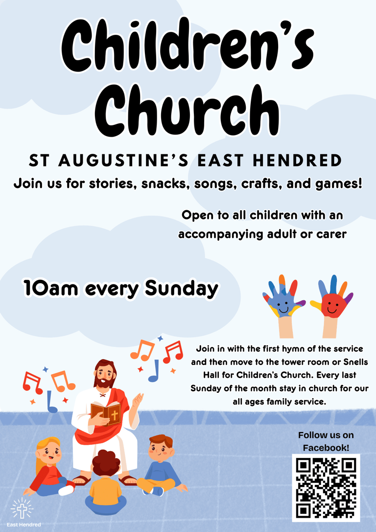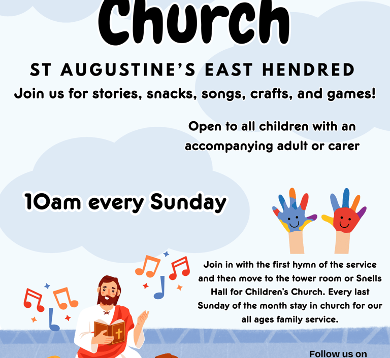 We have Children's Church during all our 10am Sunday services in East Hendred, except for Family Services which are usually every last Sunday of the month where all ages worship together.